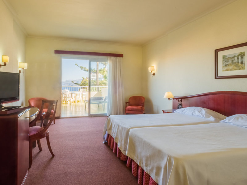 - Limited Sea View Superior (DZM2), Doppelzimmer, im Hauptgebäude, Meerseite, Meerblick, ca. 28 m², Gesamtanzahl der Räume in diesem Zimmertyp: 1, 2 Einzelbetten (90x190cm), 1 Zustellbett (100x200cm), Babybett: ohne Gebühr, Anfrage notwendig, Klimaanlage: zentral gesteuert, Fußboden: Teppichboden, Safe: gegen Gebühr, Schreibtisch, Kühlschrank: ohne Gebühr, Telefon, Internet: WLAN/WiFi: ohne Gebühr, Fernseher: Flatscreen, im Schlafzimmer, deutsches Programm, Sat-TV, Roomservice: täglich 08:00 Uhr - 13:00 Uhr und 16:00 Uhr - 20:00 Uhr, gegen Gebühr, Reinigungsservice: täglich, ohne Gebühr, Badewanne oder Dusche, WC, Bademantel: gegen Gebühr, Slipper: gegen Gebühr, Föhn, Terrasse: mit Liegestühlen