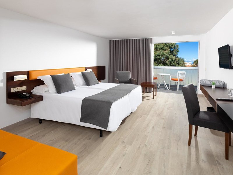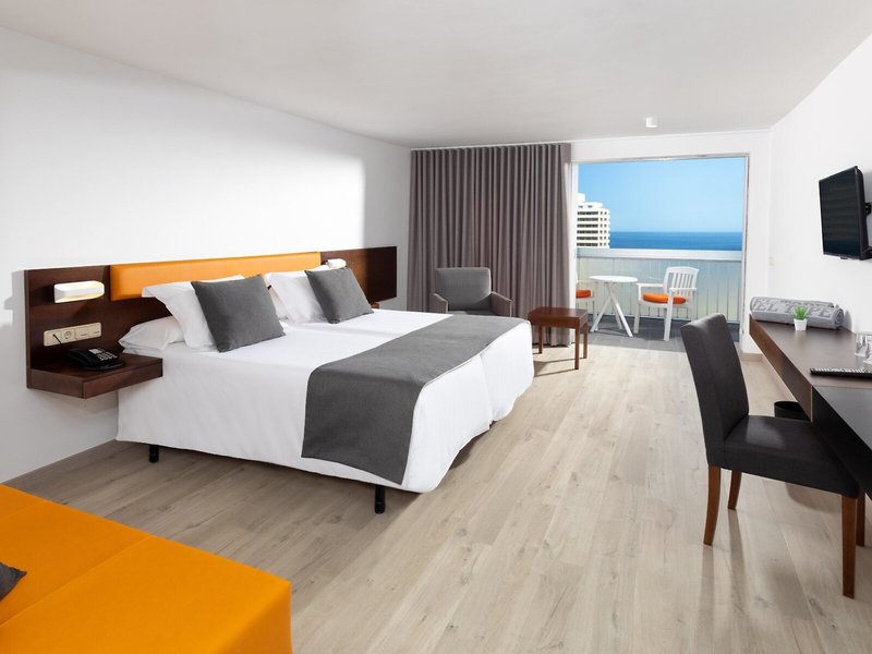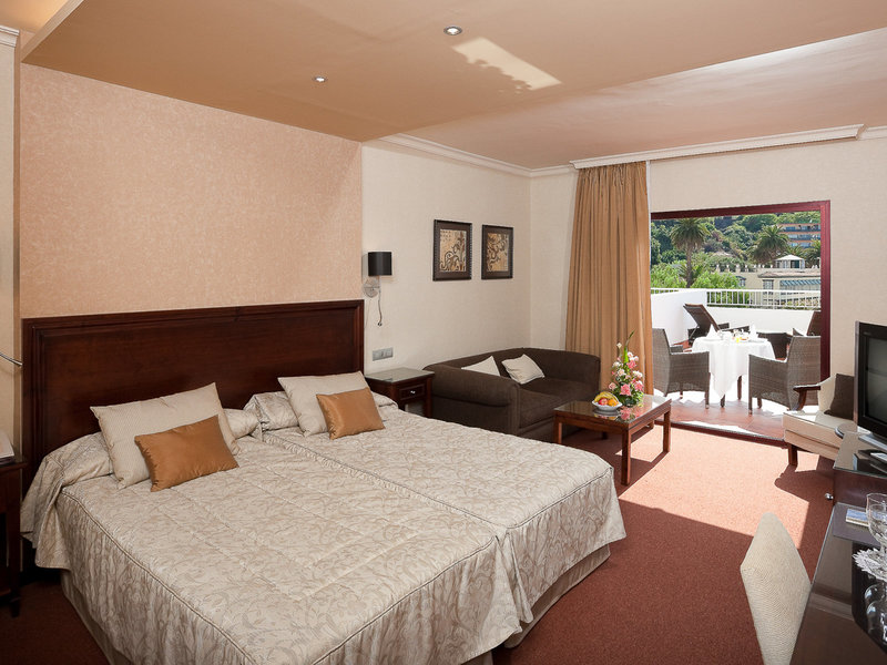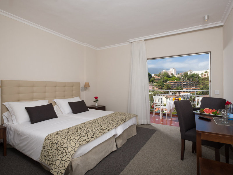 - Deluxe Teide View (DZX1), dvojlôžková izba, v hlavnej budove, horská strana, výhľad na Teide, cca 20 m², posledná čiastočná rekonštrukcia v roku 2015, celkový počet izieb v tomto type izby: 1, 2 samostatné postele (90x190cm), detská postieľka: zadarmo, na požiadanie, klimatizácia: centrálne ovládaná, podlaha: koberec, trezor: za poplatok, písací stôl, chladnička: zadarmo, telefón, internet: WLAN/WiFi: zadarmo, televízor: plochá obrazovka, v spálni, nemecké kanály, satelitná TV, izbová služba: denne 8:00 - 13:00 a 16:00 - 20:00, za poplatok, upratovacia služba: denne, zadarmo, sprcha, WC, župan: za poplatok, papuče: za poplatok, fén, balkón: s posedením