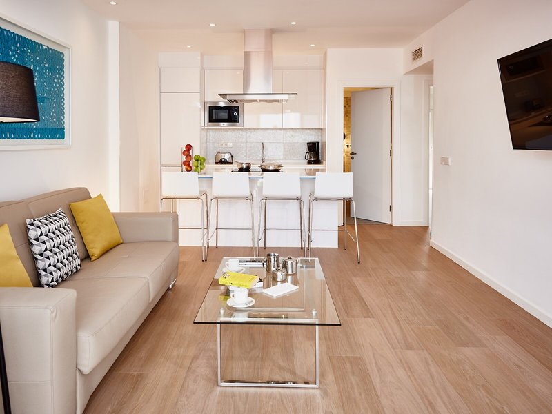 - 1 Bedroom Apartment (XTE), Appartement, ca. 50 m², Gesamtanzahl der Räume in diesem Zimmertyp: 2, Aufteilung wie folgt: Wohnzimmer, 1 Schlafzimmer, 1 Doppelbett, 1 Schlafsofa, Klimaanlage: individuell regelbar, Safe: ohne Gebühr, Sitzecke, Küche, Kühlschrank: ohne Gebühr, Mikrowelle, Kaffee-/Teezubereiter, Telefon, Internet: WLAN/WiFi: ohne Gebühr, Fernseher: Flatscreen, Dusche, WC, Föhn, Balkon oder Terrasse: mit Sitzgelegenheit