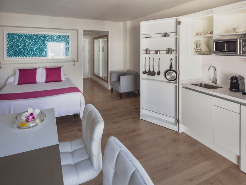 - Studio (CUF), Studio, ca. 35 m², Gesamtanzahl der Räume in diesem Zimmertyp: 1, Aufteilung wie folgt: kombiniertes Wohn-/Schlafzimmer, Klimaanlage: individuell regelbar, Safe: ohne Gebühr, Sitzecke, Küche, Kühlschrank: ohne Gebühr, Mikrowelle, Kaffee-/Teezubereiter, Telefon, Internet: WLAN/WiFi: ohne Gebühr, Fernseher: Flatscreen, Dusche, WC, Föhn, Balkon oder Terrasse: mit Sitzgelegenheit