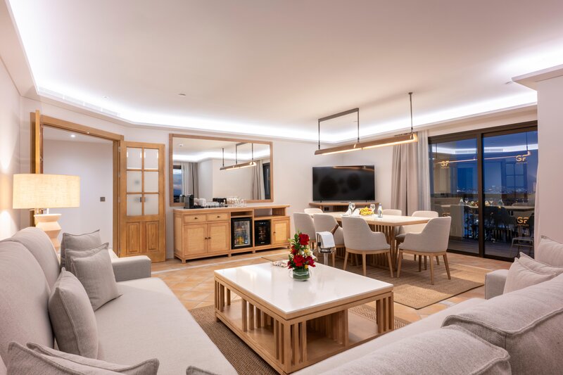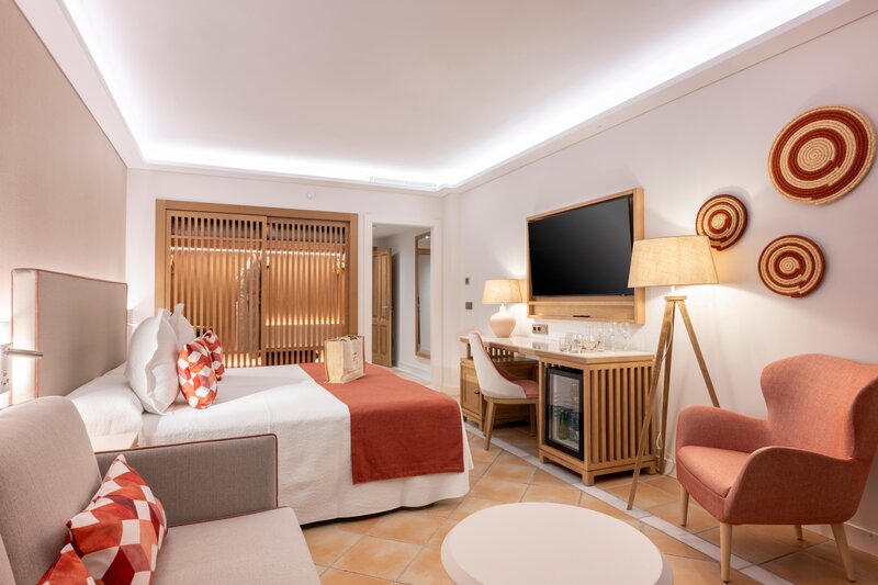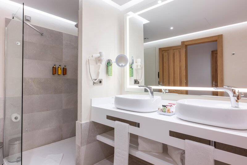 (Balkón alebo terasa): Minibar (za poplatok). TV, telefón. Vaňa/sprcha, WC, vírivka, sušič vlasov, župan. Balkón/terasa. Max. 3 dospelí.