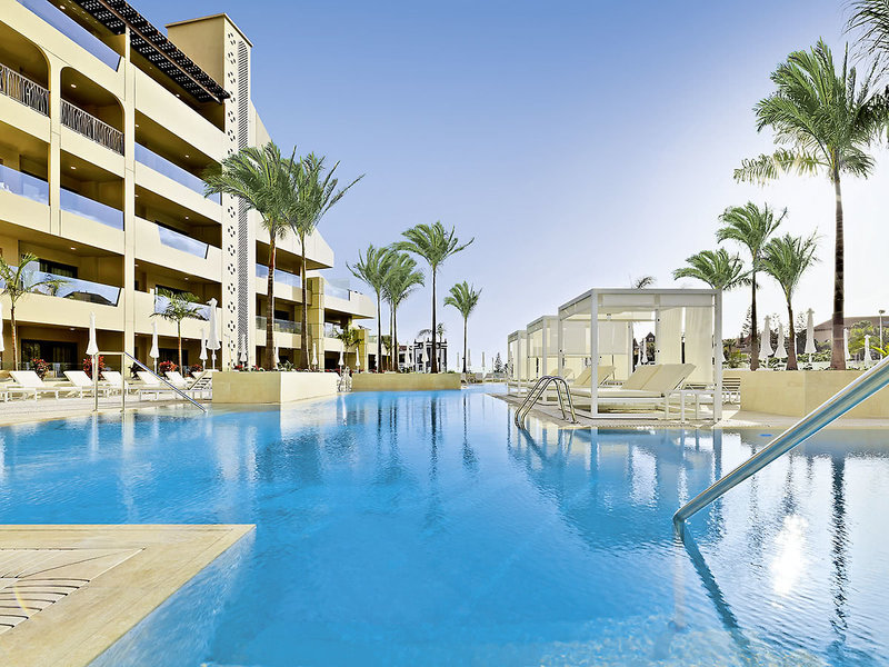 Ausstattung: Neu eröffnetes voll klimatisiertes Luxushotel mit gepflegter subtropischer Gartenanlage, Swimmingpoollandschaft mit Aktivitätenpool (Surfpool; geg. Geb.) umgeben von, Sonnenterrassen, Liegen und Schirmen, Pool-/Snackbar. Auf der Dachterrasse bietet ein weiterer Pool mit separatem FFK-Bereich die Möglichkeit zum Entspannen. Rezeption, WLAN im gesamten Hotel, Restaurants, Bars. Landeskategorie: 5 Sterne, 242 Zimmer, Lifte.