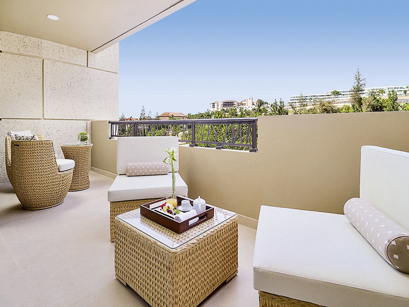 Harmonysuiten (SUH, ca. 91 qm), separates Schlafzimmer, Wohnraum mit Schlafsofa, Klimaanlage, Minibar, TV (50 Zoll), WLAN, Safe. Teilweise offenes Badezimmer mit Badewanne/Dusche, separates WC, Föhn, Terrasse. Max. 3E+1K