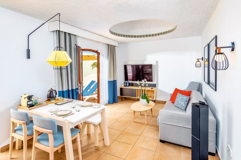 Suite Premier: Die Zimmer bestehen aus einem kombinierten Wohn-/Schlafraum und einem separaten Schlafzimmer und sind freundlich eingerichtet mit Klimaanlage, Telefon, Satelliten-TV, Sofa, Mietsafe, Badezimmer mit Dusche/WC und Föhn. Außerdem gibt es eine Kochnische mit Wasserkocher, Mikrowelle, Toaster, Kaffeemaschine und Kühlschrank. Es gibt eine möblierte Terrasse (MAN). Auch ohne Verpflegung buchbar (MAB).