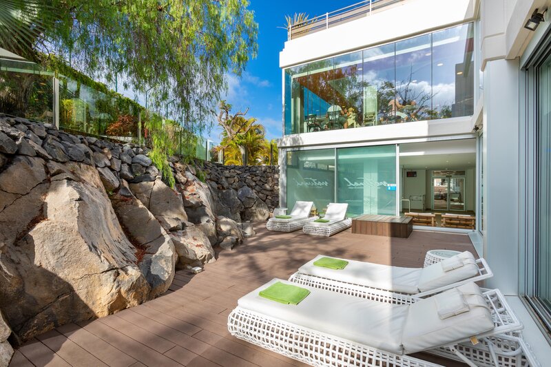 Poloha: V letovisku Playa de las Americas, Tenerife, priamo na verejnej pláži Playa del Troya. Bary, reštaurácie, supermarket a obchody sú vzdialené asi 100 metrov. Playa de las Americas je vzdialená asi 50 metrov a Siam Park je vzdialený asi 1 km.