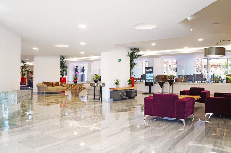 Ausstattung: 3 Pools, Kinderpool. Liegen, Schirme am Pool und am Strand (geg. Geb.), Handtücher am Pool (geg. Geb.), Pool-/Snackbar. Empfangshalle, Rezeption, Lobby-Bar, TV-Lounge. 2 Restaurants mit internationalen Speisen, 2 Bars, Shop, Friseur, Parkplatz (geg. Geb.). 354 Zimmer, 8 Etagen, 5 Lifte.