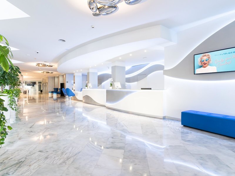 Ausstattung: 2 Pools. Liegen am Pool und am Strand (geg. Geb.), Schirme, Handtücher am Pool (geg. Geb.), Pool-/Snackbar, Sonnenterrasse. Empfangshalle, Rezeption, Lobby-Bar, Safe (geg. Geb.), TV-Lounge. 2 Restaurants (Buffet & à la carte) mit nationalen Speisen, Terrasse, 2 Bars, Shop, Parkplatz (geg. Geb.). 313 Zimmer, 10 Etagen, 3 Lifte.