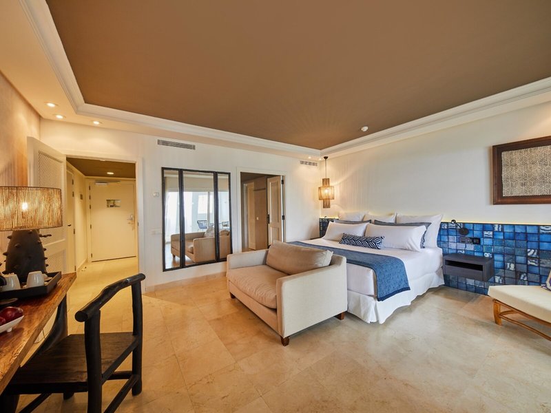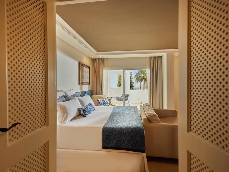 - PREFFERED CLUB JUNIOR SUITE SEA VIEW (JSM2), Juniorsuite, Nichtraucherzimmer, Meerseite, Meerblick, ca. 42 m², letzte Komplettrenovierung 2017, Gesamtanzahl der Räume in diesem Zimmertyp: 1, Aufteilung wie folgt: kombiniertes Wohn-/Schlafzimmer, 2 Einzelbetten (100x200cm), 1 Zustellbett, Babybett: ohne Gebühr, Anfrage & Reservierung notwendig, Klimaanlage: ohne Gebühr, zentral gesteuert, kalt, Safe: ohne Gebühr, Nespressomaschine, Wasserkocher, Minibar: gegen Gebühr, Softdrinks: gegen Gebühr, bei All Inclusive inklusive, Wasser: gegen Gebühr, bei All Inclusive inklusive, alkoholische Getränke: gegen Gebühr, Minibarauffüllung: täglich, Telefon, Internet: WLAN/WiFi: ohne Gebühr, Fernseher: Flatscreen, deutsches Programm, Sat-TV, Roomservice: täglich 07:00 Uhr - 23:00 Uhr, gegen Gebühr, Reinigungsservice: täglich, ohne Gebühr, Dusche, Regendusche, WC, Bademantel: ohne Gebühr, Slipper: ohne Gebühr, Föhn, Kosmetikspiegel, Balkon oder Terrasse: mit Sitzgelegenheit