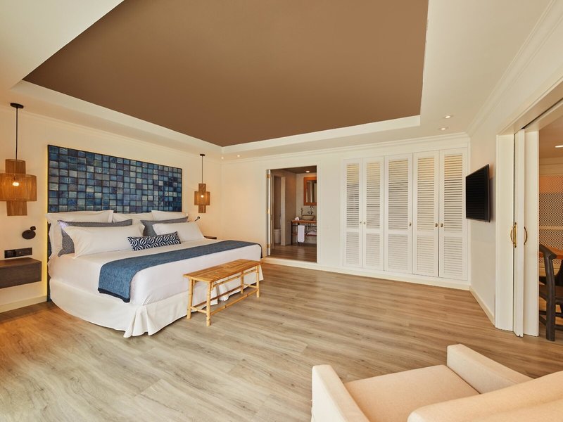 - PREFERRED CLUB JUNIOR SUITE INLAND VIEW (JSX2), Juniorsuite, Nichtraucherzimmer, ca. 42 m², letzte Komplettrenovierung 2017, Gesamtanzahl der Räume in diesem Zimmertyp: 1, Aufteilung wie folgt: kombiniertes Wohn-/Schlafzimmer, 2 Einzelbetten (100x200cm), 1 Zustellbett, Babybett: ohne Gebühr, Anfrage & Reservierung notwendig, Klimaanlage: ohne Gebühr, zentral gesteuert, kalt, Safe: ohne Gebühr, Nespressomaschine, Wasserkocher, Minibar: gegen Gebühr, Softdrinks: gegen Gebühr, bei All Inclusive inklusive, Wasser: gegen Gebühr, bei All Inclusive inklusive, alkoholische Getränke: gegen Gebühr, Minibarauffüllung: täglich, Telefon, Internet: WLAN/WiFi: ohne Gebühr, Fernseher: Flatscreen, deutsches Programm, Sat-TV, Roomservice: täglich 07:00 Uhr - 23:00 Uhr, gegen Gebühr, Reinigungsservice: täglich, gegen Gebühr, Dusche, Regendusche, Badewanne, WC, Bademantel: ohne Gebühr, Slipper: ohne Gebühr, Föhn, Kosmetikspiegel, Balkon oder Terrasse: mit Sitzgelegenheit