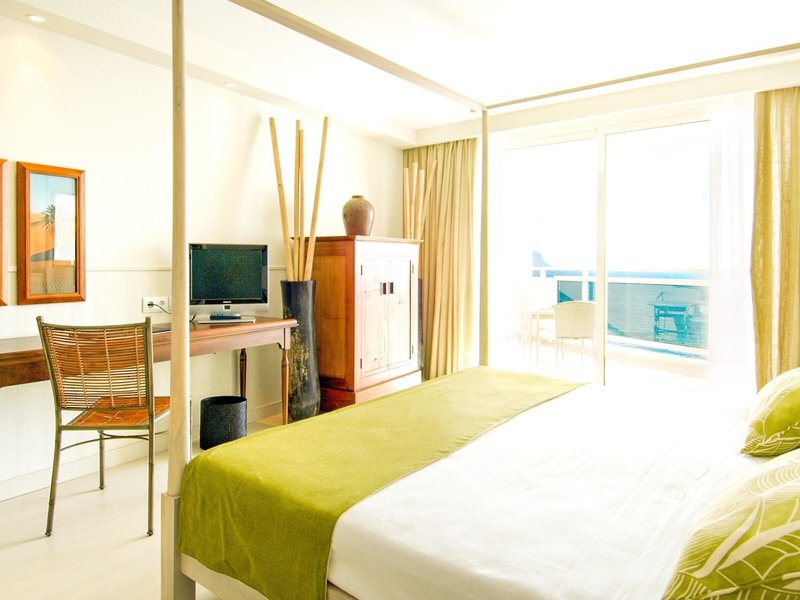 - Dvojlôžková izba s výhľadom na more superior (DZM2), dvojlôžková izba, nefajčiarska izba, v hlavnej budove, morská strana, výhľad na more, výhľad na Vistas al mar, cca 35 m², posledná kompletná rekonštrukcia v roku 2006, celkový počet izieb v tento typ izby: 1, rozloženie takto: kombinovaná obývačka/obývacia izba Spálňa, 2 samostatné lôžka (90x200cm), 1 rozkladacia pohovka (115x175cm), detská postieľka: bez Poplatok, požiadavka a rezervácia nutná, klimatizácia: individuálne nastaviteľná, studená, podlaha: laminát, trezor: bez poplatku, pohovka, písací stôl, minibar: za poplatok, dopĺňanie minibaru: denne, telefón, Internet: WLAN/WiFi: bez poplatku, televízor: plochá obrazovka, nemecký program, satelitná TV, izbová služba: 9:00 - 22:00, za poplatok, upratovanie: denne, bez poplatku, vaňa, WC, fén, kozmetické zrkadlo, balkón: s posedením
