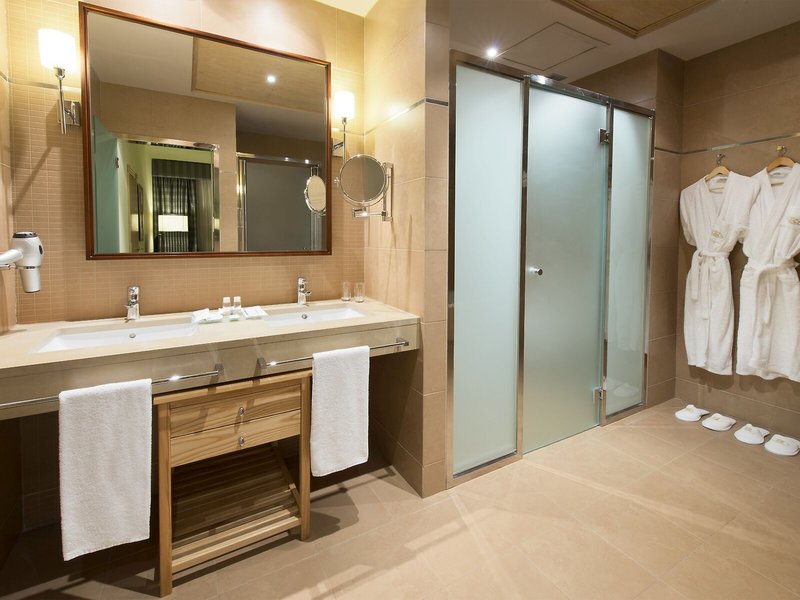 So wohnen Sie: Für angenehmes Raumklima in den Zimmern sorgen eine Klimaanlage und eine Heizung. In den mit Teppichböden ausgestatteten Zimmern steht ein Doppelbett, ein Queensize-Bett oder ein Kingsize-Bett bereit. Zustellbetten können angefordert werden. Außerdem sind ein Safe, eine Minibar und ein Schreibtisch verfügbar. Ein Minikühlschrank zählt ebenfalls zur Standardeinrichtung. Besten Urlaubskomfort bieten ein Telefon mit Direktwahl, ein TV-Gerät mit Satelliten-/Kabelempfang und WiFi (ohne Gebühr). Im Badezimmer, ausgestattet mit einer Dusche und einer Badewanne, gibt es einen Haartrockner. Als Besonderheit genießen die Gäste in den Badezimmern Kosmetikartikel. Buchbar sind rollstuhlgerechte Zimmer. Das Haus bietet Familien- und Nichtraucherzimmer.