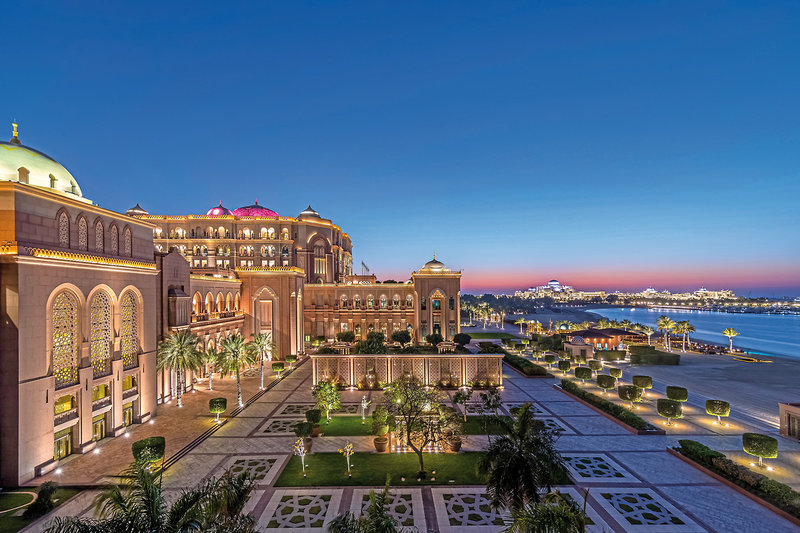 Das Hotel: Das luxuriöse Palasthotel wurde 2020 von der asiatischen Hotelgruppe Mandarin Oriental übernommen. Es liegt in einer 85 ha großen Parkanlage direkt am längsten (ca. 1,3 km) privaten, weißen Sandstrand auf dem Festland Abu Dhabis. Die Fassade des Hotels reflektiert die verschiedenen Farben des Wüstensandes und wirkt mit seinen 114 vergoldeten Kuppeln wie ein wahrer Märchenpalast. Der Swimmingpool am Ostflügel dient der Entspannung mit Poolbar und separaten Jacuzzis. Am Westflügel befindet sich ein Abenteuerpool mit Wasserrutschen, Wasserfällen und einem gemächlichen Fluss. Beide Pools verfügen über einen separaten Kinderpool. Mit Beachclub, Kinderclub, hochwertigen Geschäften, Boutiquen, Bars & Restaurants. Der Flughafen Abu Dhabi ist ca. 35 km entfernt.
