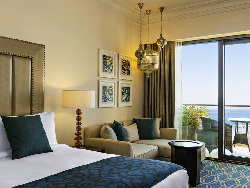 - Al Dana Suite (SUX1), Suite, im Hauptgebäude, ca. 80 m², Gesamtanzahl der Räume in diesem Zimmertyp: 2, Aufteilung wie folgt: Wohnzimmer, 1 Schlafzimmer, Babybett: ohne Gebühr, Anfrage notwendig, Klimaanlage: individuell regelbar, zentral gesteuert, Safe: ohne Gebühr, Sofa, Schreibtisch, Kaffee-/Teezubereiter, Minibar: gegen Gebühr, Minibarauffüllung: täglich, Telefon, Internet: WLAN/WiFi: ohne Gebühr, Fernseher: Flatscreen, im Wohnbereich, im Badezimmer, im Schlafzimmer, deutsches Programm, DVD-Player, Radio, iPod-Docking Station, Roomservice: täglich, gegen Gebühr, Reinigungsservice: täglich, ohne Gebühr, Dusche, Badewanne, WC, separates WC, Bademantel: ohne Gebühr, Slipper: ohne Gebühr, Föhn, Balkon: mit Sitzgelegenheit