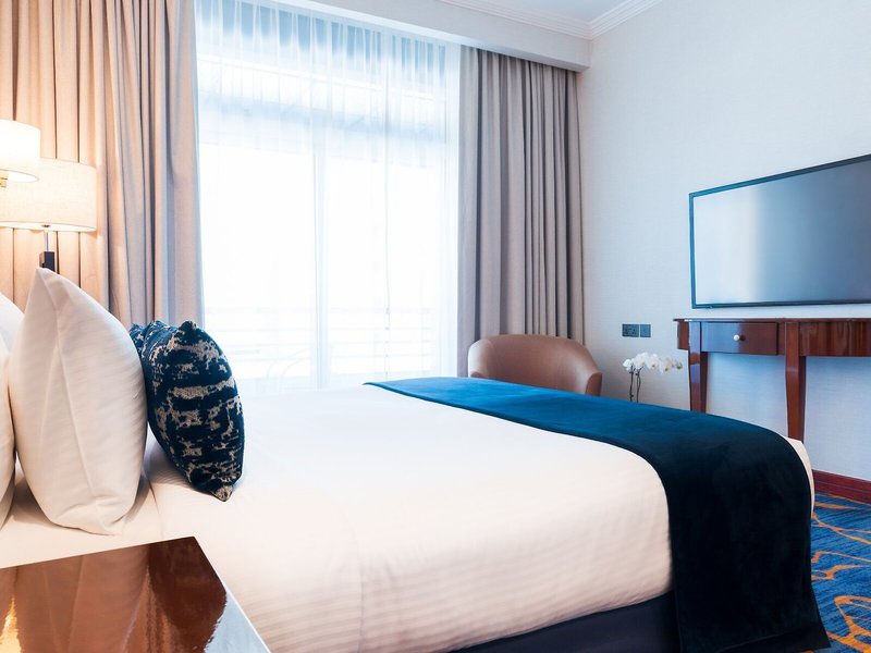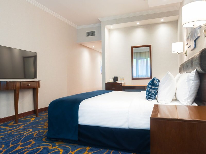 Ubytovanie: Klimatizácia a kúrenie zabezpečujú príjemnú vnútornú klímu v izbách. Hostia si môžu vychutnať výhľad na mesto zo svojho balkóna alebo terasy. Izby majú manželskú posteľ, manželskú posteľ alebo manželskú posteľ. Prístelky je možné vyžiadať. K dispozícii je aj trezor, minibar a písací stôl. K štandardnému vybaveniu patrí aj kuchynka s chladničkou, minichladničkou a príslušenstvom na prípravu čaju/kávy. Nechýba ani žehliaca súprava a lis na nohavice. Telefón, TV, zásuvkový adaptér a WiFi poskytujú ten najlepší dovolenkový komfort. Hostia môžu využiť službu večerného rozostlania. K ďalšiemu vybaveniu patria papuče. Kúpeľne sú vybavené sprchovacím kútom, vaňou a bidetom. Na každodenné použitie je k dispozícii sušič vlasov, župany a telefón. Ako zvláštnosť si hostia môžu vychutnať kozmetické produkty a výber uterákov v kúpeľniach. Je možné si zarezervovať bezbariérové izby. Ubytovanie ponúka rodinné, nefajčiarske a fajčiarske izby.