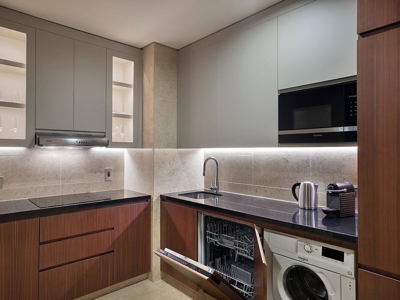 - One Bedroom Residential Suite (SUX3), Suite, im Hauptgebäude, Straßenseite, Meerblick, Stadtblick, ca. 100 m², Gesamtanzahl der Räume in diesem Zimmertyp: 2, Aufteilung wie folgt: Wohnzimmer, 1 Schlafzimmer, Babybett: ohne Gebühr, Anfrage & Reservierung notwendig, Klimaanlage: ohne Gebühr, individuell regelbar, Fußboden: Teppichboden, Safe: ohne Gebühr, Sofa, Schreibtisch, Bügeleisen, Bügelbrett, Waschmaschine, Küche, Kühlschrank: ohne Gebühr, Gas/E-Herd, Backofen, Mikrowelle, Geschirrspüler, Nespressomaschine, Kaffee-/Teezubereiter, Wasserkocher, Minibar: gegen Gebühr, Softdrinks: gegen Gebühr, Wasser: gegen Gebühr, alkoholische Getränke: gegen Gebühr, Snacks: gegen Gebühr, Minibarauffüllung: mehrmals pro Woche, Telefon, Internet: WLAN/WiFi: ohne Gebühr, Breitband-Internet/DSL: ohne Gebühr, Fernseher: Flatscreen, im Wohnbereich, im Badezimmer, im Schlafzimmer, deutsches Programm, Sat-TV, Kabel-TV, Radio, iPod-Docking Station, Roomservice: täglich 24 Stunden, gegen Gebühr, Reinigungsservice: täglich, ohne Gebühr, Tageszeitung: ohne Gebühr, Sprachen: englisch, Regendusche, WC, Bademantel: ohne Gebühr, Slipper: ohne Gebühr, Föhn, Kosmetikspiegel