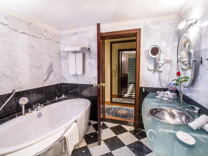 Ubytovanie: Klimatizácia a kúrenie zabezpečujú príjemnú vnútornú klímu v izbách. Izby majú manželskú posteľ. K dispozícii je aj trezor, minibar a písací stôl. K dispozícii je tiež mini chladnička a príslušenstvo na prípravu čaju/kávy. Nechýba ani žehliaca súprava a lis na nohavice. Rôzne možnosti komunikácie a zábavy poskytuje komfortné vybavenie vrátane telefónu s priamou voľbou, TV so satelitným/káblovým príjmom, rádia a WiFi. K ďalšiemu vybaveniu patria papuče. Kúpeľne sú vybavené sprchovacím kútom a vaňou. K dispozícii je sušič vlasov, župany a telefón. Rezervovať je možné aj bezbariérové izby s bezbariérovými kúpeľňami. Dom ponúka rodinné a nefajčiarske izby.