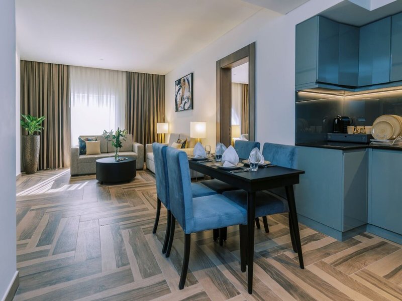 Ubytovanie: Klimatizácia zabezpečuje príjemnú vnútornú klímu v izbách. Hostia si môžu vychutnať výhľad na mesto zo svojho balkóna alebo terasy. Izby sú vybavené manželskou posteľou, posteľou veľkosti queen, posteľou veľkosti king alebo rozkladacou pohovkou. Prístelky je možné vyžiadať. K dispozícii je aj trezor, minibar a písací stôl. K dispozícii je aj chladnička, mikrovlnná rúra a príslušenstvo na prípravu kávy/čaju. Telefón, TV s plochou obrazovkou a WiFi poskytujú ten najlepší dovolenkový komfort. Kúpeľňa je vybavená sprchovacím kútom, bidetom a sušičom vlasov. Kozmetické výrobky poskytujú extra pohodlie v kúpeľniach. Apartmánový hotel ponúka rodinné a nefajčiarske izby.