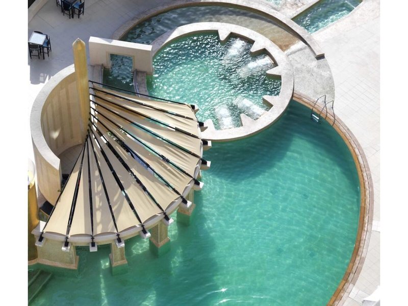 Sport & Fitness: Ein Außenpool und ein Hallenbad laden zum entspannten Badevergnügen ein. Kinder können sich in einem Planschbecken austoben. Erfrischende Getränke an der Poolbar und wohlige Entspannung im Whirlpool bringen alle Wasserratten in die beste Stimmung. Zur Erholung laden Liegestühle unter Sonnenschirmen auf der Sonnenterrasse ein. Sportliche Abwechslung bieten viele verschiedene Aktivitäten, die in der Unterbringung angeboten werden, wie z.B. Radfahren/Mountainbiking, Tennis, Basketball, Minigolf, Golfen und Reiten. Den Gästen steht im Resort mit einem Fitnessstudio, Yoga, Gymnastik und Aerobic ein breites Spektrum an Indoor-Sportarten zur Auswahl. In der Unterbringung werden verschiedene Wellnessangebote wie Spa, Sauna, Dampfbad, Hammam, Schönheitssalon, Massage-Anwendungen und Solarium offeriert. Ein Animationsprogramm, ein Miniclub und eine Disco sorgen für besten Freizeitspaß.