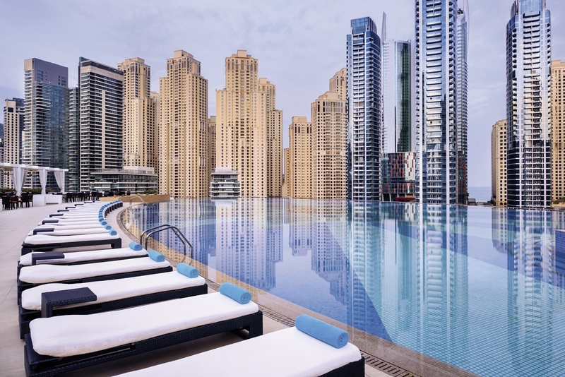 Luxushotel mit Blick auf den weltgrößten künstlich angelegten Yachthafen