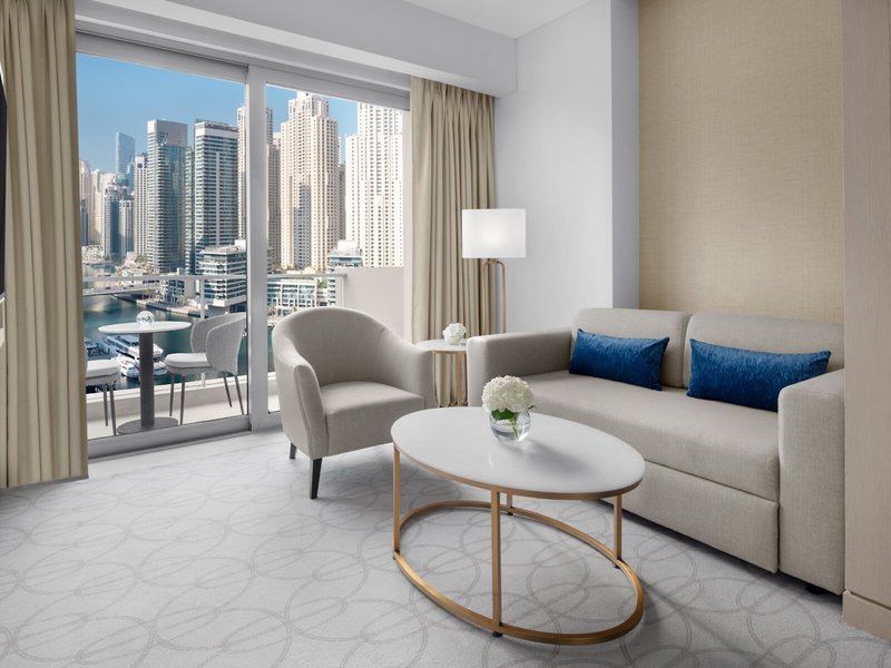 - Premier Suite Marina View (SUX2), Suite, Hafenblick, Blick auf Marina View, ca. 70 m², Gesamtanzahl der Räume in diesem Zimmertyp: 2, Aufteilung wie folgt: Wohnzimmer, 1 Schlafzimmer, 1 Doppelbett, Klimaanlage: ohne Gebühr, individuell regelbar, kalt, Fußboden: Teppichboden, Safe: ohne Gebühr, Sofa, Schreibtisch, Bügeleisen, Bügelbrett, Kaffee-/Teezubereiter, Minibar: gegen Gebühr, Softdrinks: gegen Gebühr, Wasser: gegen Gebühr, alkoholische Getränke: gegen Gebühr, Snacks: gegen Gebühr, Minibarauffüllung: täglich, Telefon, Internet: WLAN/WiFi: ohne Gebühr, Fernseher: Flatscreen, im Wohnbereich, im Schlafzimmer, deutsches Programm, Kabel-TV, Roomservice: täglich, gegen Gebühr, Reinigungsservice: täglich, ohne Gebühr, Dusche, Badewanne, WC, Bademantel: ohne Gebühr, Slipper: ohne Gebühr, Föhn, Kosmetikspiegel