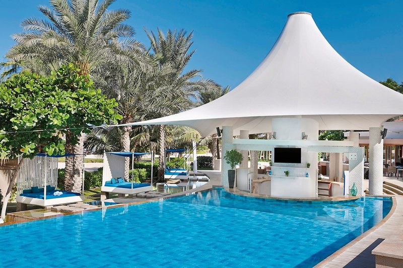 Kulinárske: Talianske jedlá na vás čakajú v Splendido. Hotel Amaseena ponúka arabské pochúťky a diskrétnu večernú zábavu (hudbu a vodnú fajku) v beduínskych stanoch. Reštaurácia Caravan ponúka indické, arabské a medzinárodné jedlá, raňajky a slávny londýnsky spoločenský brunch. Plážová reštaurácia Tamoka je inšpirovaná karibskou oblasťou s latinskoamerickými príchuťami. Popoludňajší čaj si môžete vychutnať v Lobby Lounge a Library Bar je známy kvalitnými whisky a cigarami. V reštaurácii Blue Jade sa podávajú prvotriedne ázijské špeciality. La Baie pri bazéne pre dospelých vás pozýva na stredomorské jedlá a salónikovú hudbu. Pavilón Gulf sa nachádza priamo pri rodinnom bazéne v neformálnej atmosfére.