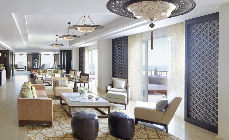 Die Zimmer: Das Hotel bietet 294 elegant ausgestattete Zimmer und Suiten, alle mit Blick zum Strand. Zur Ausstattung gehören Bad, Föhn, Bademantel, LCD-TV, Telefon, WLAN, Klimaanlage, Minibar, Safe und Balkon. Club-Zimmer und Suiten gewähren exklusiven Zugang zur außergewöhnlichen Club Lounge mit privater Rezeption, persönlichem Concierge und Butler-Service. Gäste genießen ein Gourmet-Frühstück (7–11 Uhr), Mittagssnacks (12–14 Uhr), Afternoon Tea (14–16 Uhr), Horsd’oeuvres (17–20 Uhr), Desserts (20–22 Uhr) sowie eine Auswahl erlesener alkoholischer und nicht-alkoholischer Getränke (12–22 Uhr) in einem eleganten und ruhigen Ambiente. Zudem sep. Rezeption, privater Concierge, WLAN (ohne Gebühr) und Butler-Service.