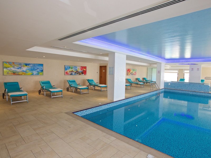 Sport & Fitness: Neben Innen- und Außenpools gibt es einen Kinderbadebereich. Pure Tiefenentspannung im Whirlpool, Vergnügen auf der Wasserrutsche und erfrischende Getränke an der Poolbar – die Gäste werden erleben, wie abwechslungsreich der Wasserspaß sein kann. Eine Sonnenterrasse, Liegestühle und Schirme sind vorhanden. Das Resort bietet mit Radfahren/Mountainbiking, Tennis, Beachvolleyball, Volleyball, Basketball, Minigolf und Angeln Möglichkeiten zum Sport im Freien. Mit Wasserskifahren, Windsurfen, Jetskifahren, Tretbootfahren, Bananenbootfahren, Kanufahren, Segeln, Katamaranfahren, Schnorcheln und Tauchen kommen auch Wassersportfreunde auf ihre Kosten. Den Gästen steht in der Unterbringung mit einem Fitnessstudio, Tischtennis, Badminton, Billard, Darts, Yoga, Gymnastik und Aerobic ein breites Spektrum an Indoor-Sportarten zur Auswahl. Im Resort werden verschiedene Wellnessangebote wie Spa, Sauna, Dampfbad, Hammam, Schönheitssalon und Massage-Anwendungen offeriert. Unterhaltung und Abwechslung in der Freizeit bieten ein Animationsprogramm und ein Miniclub.