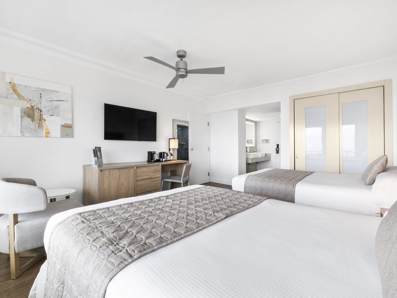 - Deluxe Ocean Front QQ bez minimálneho pobytu (ROF4), dvojlôžková izba, výhľad na more, cca 28 m², celkový počet izieb v tomto type izby: 1, rozloženie: 1 spálňa, 2 manželské postele (135x200cm), detská postieľka: cca 5 USD, požiadavka nutná, klimatizácia: centrálne ovládaná, trezor: zadarmo, stropný ventilátor, žehlička, žehliaca doska, chladnička: zadarmo, príslušenstvo na prípravu kávy/čaju, telefón, internet: WLAN/WiFi: zadarmo poplatok, TV: plochá obrazovka, SAT TV, sprcha, WC, fén, balkón: s posedením