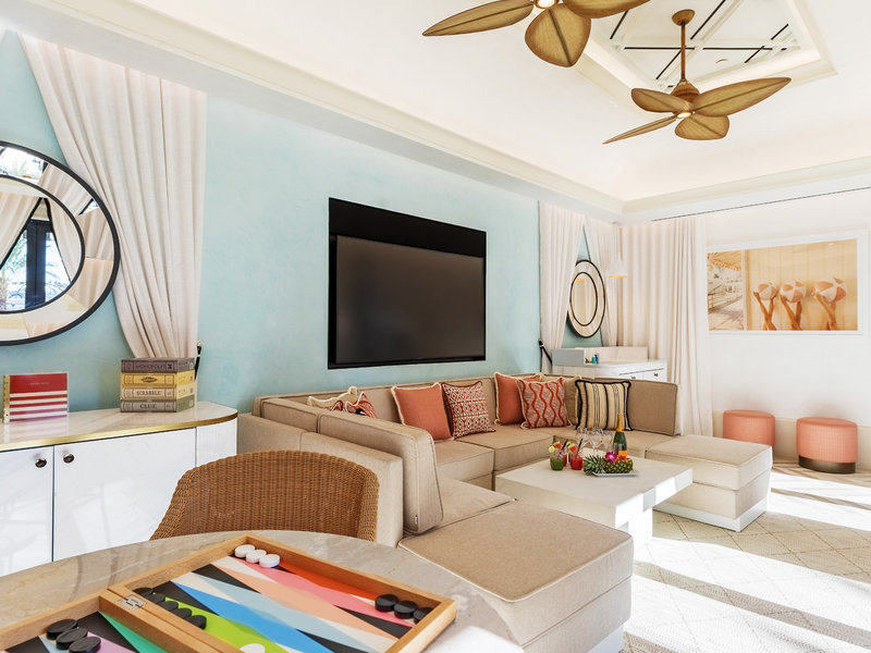 - Luxury Suite with Two Queen Beds including Resort Fee (CKF), Suite, Nichtraucherzimmer, ca. 65 m², Gesamtanzahl der Räume in diesem Zimmertyp: 2, Aufteilung wie folgt: Wohnzimmer, 1 Schlafzimmer, 2 Queen Size Betten, Klimaanlage: individuell regelbar, Heizung: individuell regelbar, Fußboden: Teppichboden, Safe: ohne Gebühr, Sitzecke, Sofa, Schreibtisch, Esstisch, Minibar: gegen Gebühr, Telefon, Internet: WLAN/WiFi: ohne Gebühr, Fernseher: Flatscreen, Radio, Roomservice: gegen Gebühr, separate Dusche, Badewanne, WC, Föhn, Kosmetikspiegel