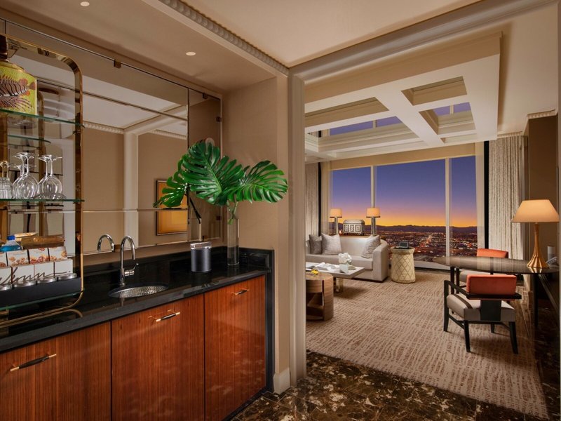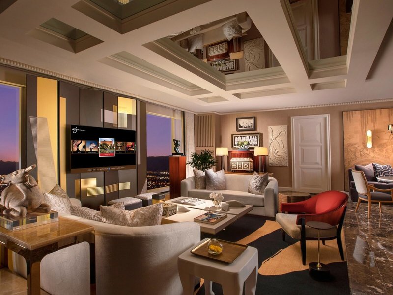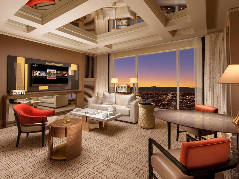 - Wynn Tower Suite Parlor (WJZ), suita, výhľad na mesto, cca 119 m², celkový počet izieb v tomto type izby: 2, rozloženie: obývacia izba, 1 spálňa, 1 posteľ king, klimatizácia: individuálne nastaviteľná, trezor: zadarmo , posedenie, pohovka, písací stôl, jedálenský stôl, minibar: za poplatok, telefón, Internet: WLAN/WiFi: bez poplatku, TV: plochá obrazovka, izbová služba: za poplatok, sprcha, vaňa, WC , župan, papuče, fén, kozmetické zrkadlo