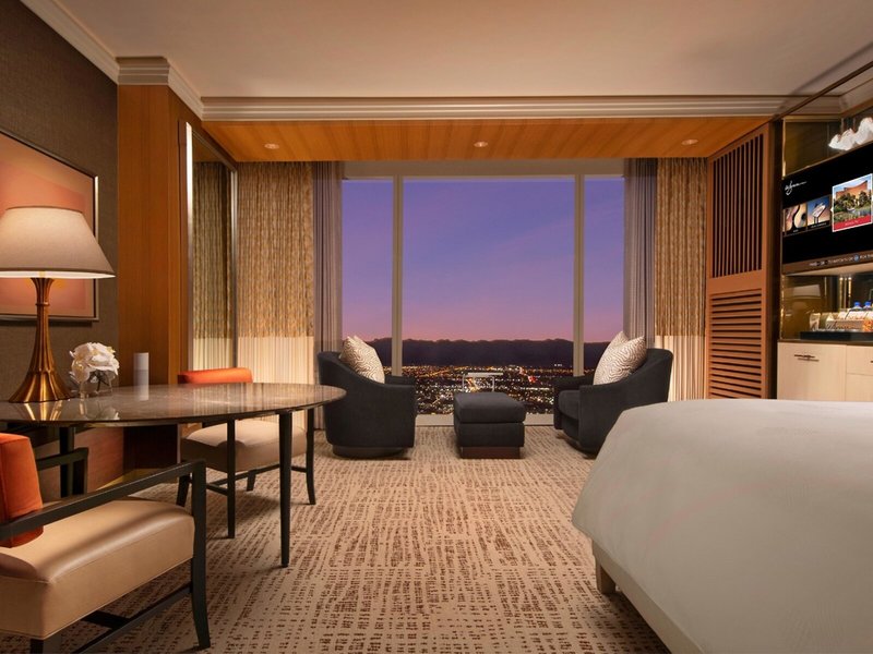 - Wynn Panoramic View King- (CCM), Doppelzimmer, Stadtblick, Blick auf den Las Vegas Strip, ca. 59 m², Gesamtanzahl der Räume in diesem Zimmertyp: 1, Aufteilung wie folgt: kombiniertes Wohn-/Schlafzimmer, Klimaanlage: individuell regelbar, Safe: ohne Gebühr, Sofa, Schreibtisch, Minibar: gegen Gebühr, Telefon, Internet: WLAN/WiFi: ohne Gebühr, Fernseher: Flatscreen, DVD-Player, Dusche, Badewanne, WC, Bademantel, Slipper, Föhn, Kosmetikspiegel