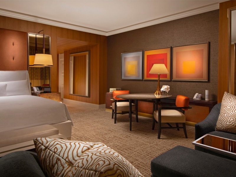 - Wynn Resort King- (CCK), Doppelzimmer, ca. 55 - 59 m², Gesamtanzahl der Räume in diesem Zimmertyp: 1, 1 King Size Bett, Klimaanlage: individuell regelbar, Safe: ohne Gebühr, Sitzecke, Schreibtisch, Esstisch, Minibar: gegen Gebühr, Telefon, Internet: WLAN/WiFi: ohne Gebühr, Fernseher: Flatscreen, Roomservice: gegen Gebühr, Dusche, Badewanne, WC, Bademantel, Slipper, Föhn, Kosmetikspiegel