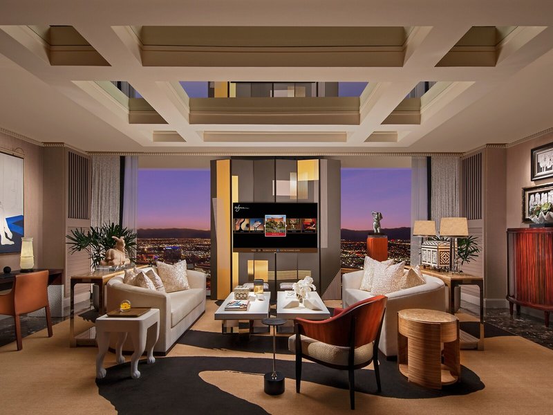 - Wynn Tower Suite Salon- (WKD), suita, výhľad na mesto, cca 168 m², celkový počet izieb v tomto type izby: 2, rozloženie: obývacia izba, 1 spálňa, 1 posteľ king, klimatizácia: individuálne nastaviteľná. , trezor: zadarmo , posedenie, pohovka, písací stôl, jedálenský stôl, minibar: za poplatok, telefón, Internet: WLAN/WiFi: bez poplatku, TV: s plochou obrazovkou, v obývacej časti, v spálni, izbová služba : za poplatok, sprcha, vaňa, WC, župan, papuče, fén, kozmetické zrkadlo