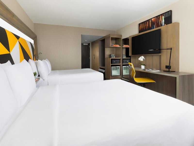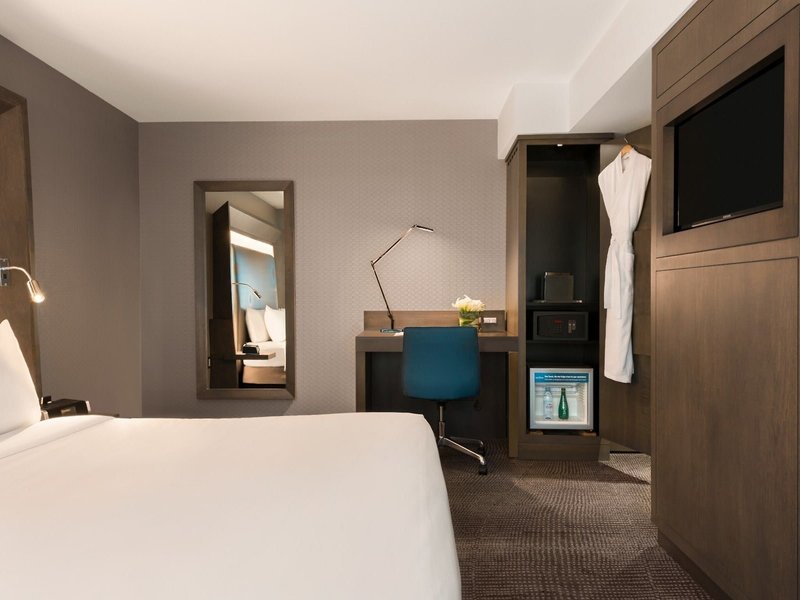 So wohnen Sie: In den Zimmern gibt es eine Klimaanlage und eine individuell steuerbare Heizung. Die mit Teppichböden ausgestatteten Zimmer verfügen über ein Doppelbett oder ein Kingsize-Bett. Zustellbetten können angefordert werden. Außerdem sind ein Safe, eine Minibar und ein Schreibtisch verfügbar. Auch ein Kühlschrank, ein Minikühlschrank und eine Mikrowelle sind vorhanden. Ein Bügelset ist für den zusätzlichen Komfort der Gäste verfügbar. Darüber hinaus sind ein Telefon mit Direktwahl, ein TV-Gerät mit Satelliten-/Kabelempfang, ein Radio, ein Wecker und WiFi (ohne Gebühr) vorhanden. Im Badezimmer, ausgestattet mit einer Dusche und einer Badewanne, gibt es einen Haartrockner. Als Besonderheit genießen die Gäste in den Badezimmern Kosmetikartikel und eine Auswahl an Handtüchern. Außerdem sind rollstuhlgerechte Zimmer mit barrierefreiem Badezimmer buchbar. Das Haus bietet Familien-, Nichtraucher- und Raucherzimmer.