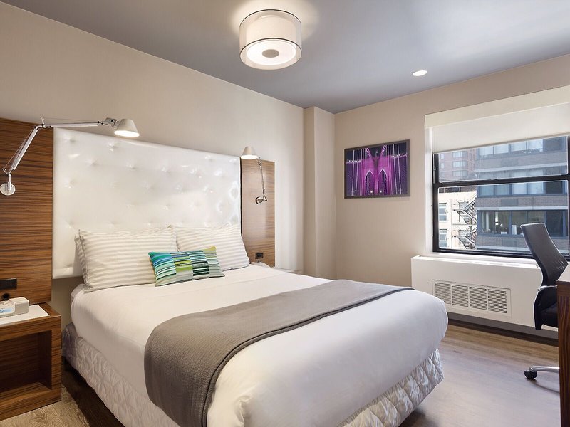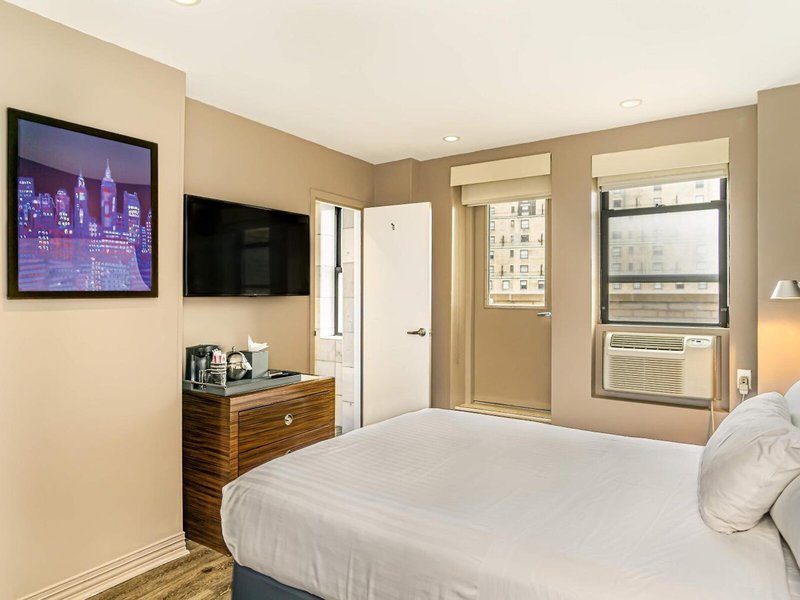 Lage & Umgebung Das Hotel liegt zentral in der Nähe des Times Square und des Broadway. In der unmittelbaren Umgebung befinden sich zahlreiche Restaurants, Bars sowie eine Anschlussstelle an das öffentliche Verkehrsnetz und eine Einkaufsmöglichkeit. Der Flughafen LaGuardia liegt in einer Entfernung von ungefähr 15 km.