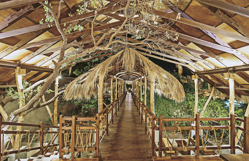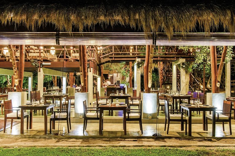 - Im Restaurant schaffen Holz, Natursteine, ein Teich mit Lotusblumen und ein Wasserfall eine angenehme Atmosphäre, es weht immer eine frische Meeresbrise