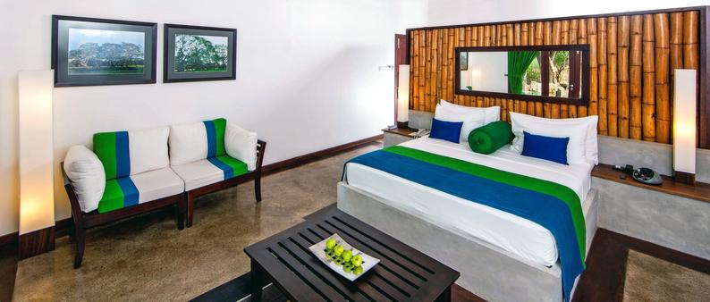 - Bývanie v prírodnom prostredí v typických bungalovoch so vzdušnými, otvorenými drevenými konštrukciami, leštenými cementovými podlahami a palmovými strechami