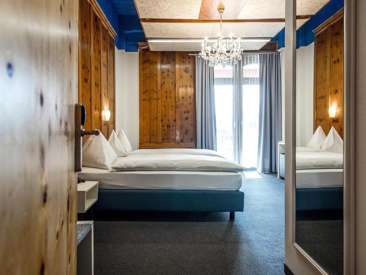 [3B01] Standard Dreibettzimmer Stadtblick: mind. 22 m², Zimmerkategorie: Standard, Zimmertyp: Dreibettzimmer, Anzahl der Räume: Schlafraum 1x, Badezimmer 1x, Anzahl der Betten: Doppelbett 1x, Zustellbett 1x, Gitterbett als Überbelegung möglich: Ja, Allgemein: Heizung, Toilettenpapier - gebührenfrei, Bettwäsche - gebührenfrei, Handtücher - gebührenfrei, Badezimmer: WC, Haarfön, Dusche, Wohnbereich: Schreibtisch, Medien & Technik: TV, WLAN/WIFI Internetanschluss - gebührenfrei, Zimmerausblick: Stadtblick