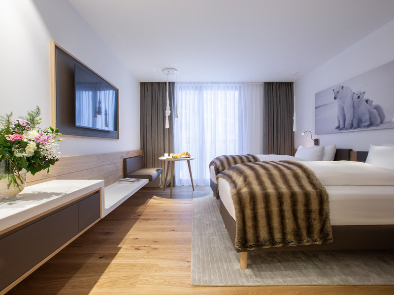 - Superior (DZX2), Doppelzimmer, Nichtraucherzimmer, im Hauptgebäude, Neubau, Bergblick, Innenhofblick, ca. 28 m², Gesamtanzahl der Räume in diesem Zimmertyp: 1, Aufteilung wie folgt: 1 Schlafzimmer, 1 King Size Bett (180x200cm), Babybett: ohne Gebühr, Anfrage & Reservierung notwendig, Heizung, Fußboden: Parkett, Safe: ohne Gebühr, Minibar: gegen Gebühr, Telefon, Internet: WLAN/WiFi: ohne Gebühr, Fernseher: Flatscreen, Roomservice: täglich 24 Stunden, Badewanne oder Dusche, Regendusche, WC, Bademantel: ohne Gebühr, Slipper: ohne Gebühr, Föhn, Kosmetikspiegel