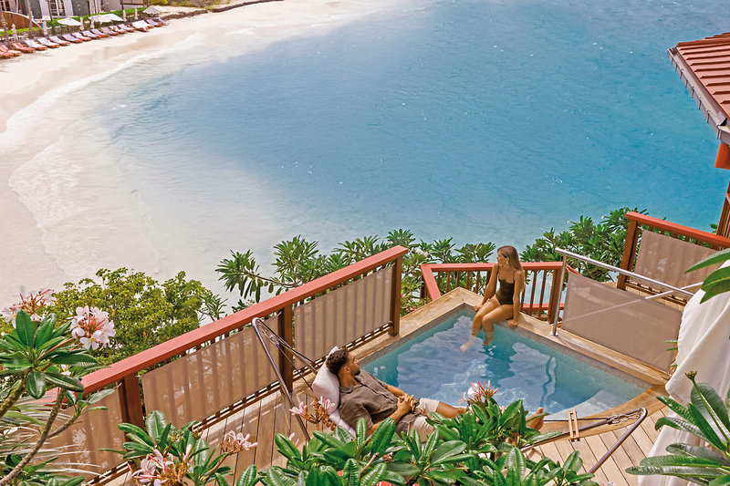 Das Hotel: Auf der kleinen Antillen Insel St. Barth liegt majestätisch auf dem Felskap “The Rock" oberhalb der feinsandigen Bucht Saint-Jean das elegante Haus der Oetker Hotel Gruppe. Das kleine Boutique-Hotel befindet sich nur ca. 10 Gehminuten von St. Jean mit seinen belebten Einkaufsgassen entfernt. Als erstes Hotel der Insel um 1950 von Rémy de Haenen erbaut, avancierte das Eden Rock bis in die 60er Jahre des 20. Jahrhunderts zum Magneten internationaler Stars und führender Dynastien wie z. B. Greta Garbo und den Rockefellers. Direkt auf dem Felsen, entlang des Strandes oder geschützt inmitten des privaten Gartens, bieten die weißgetünchten Cottages der Hotelanlage schlichte Eleganz verbunden mit luxuriös zeitlosem Design und authentisch karibischen Chic bei einmaligen Panoramablick auf das karibische Meer. Zusätzlich bietet das Hotel einen Spa, Fitnesscenter und eine Boutique. Liegen, Schirme und Badetücher am feinsandigen Strand inklusive. WLAN (ohne Gebühr). Der Flughafen von St. Barth ist ca. 2 km entfernt.