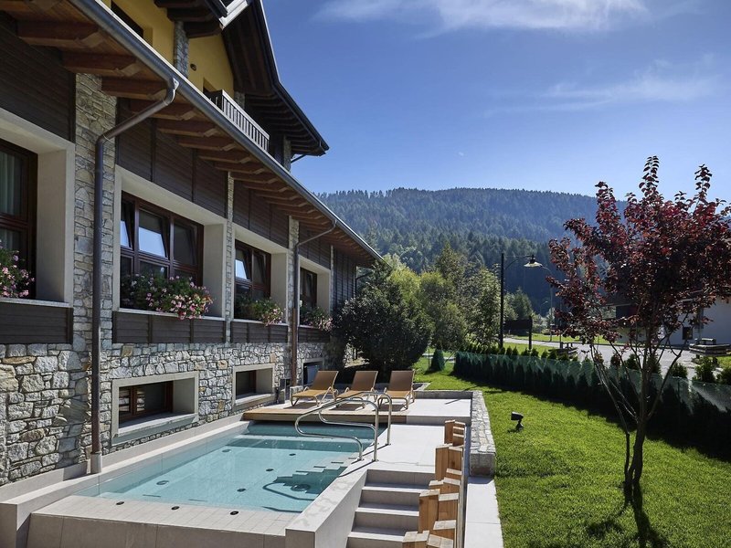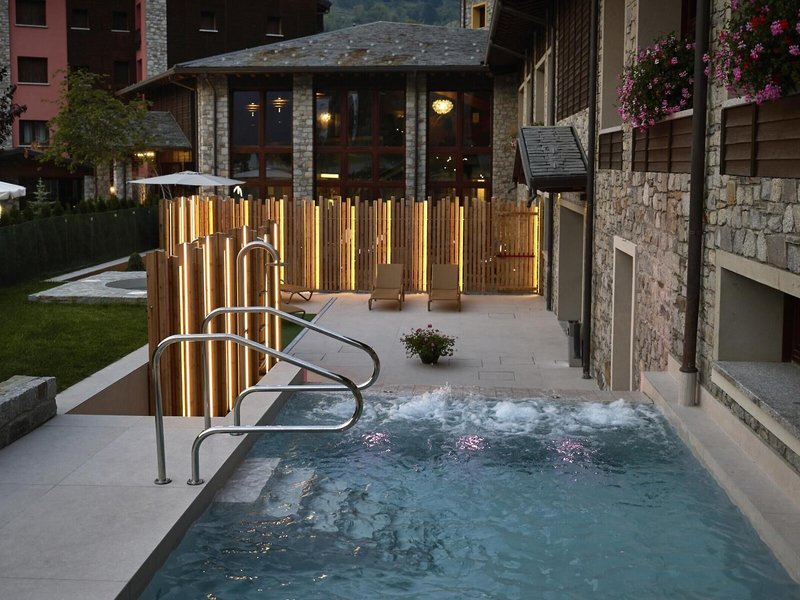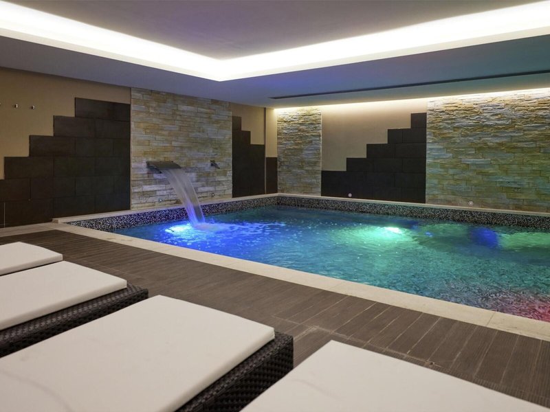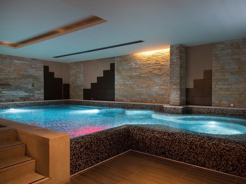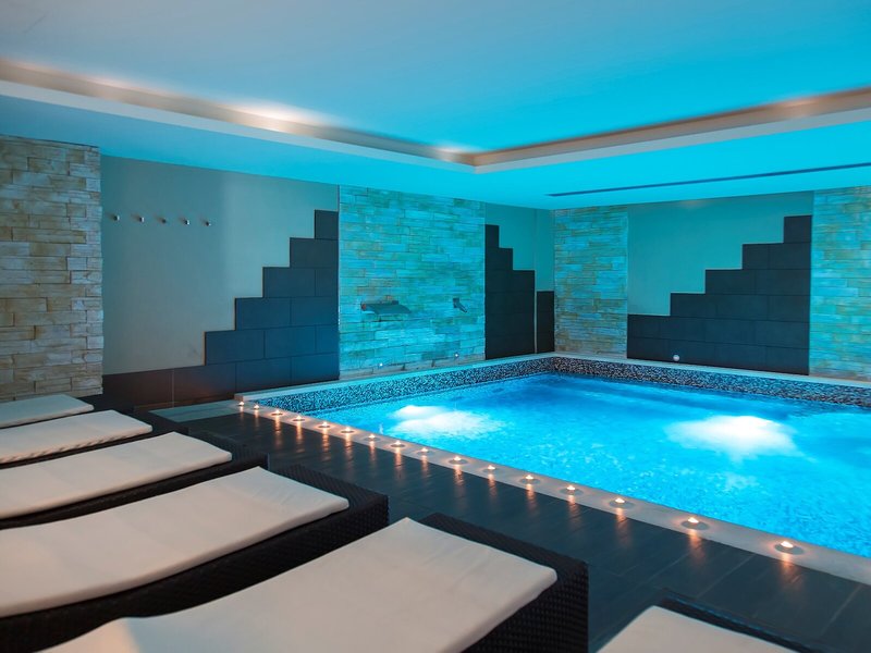 - Bazény: Vyhrievaný vonkajší bazén, vnútorný bazén, vonkajší bazén, ležadlá pri bazéne
