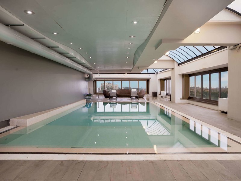 - Bazény: Vyhrievaný vonkajší bazén, vnútorný bazén, vonkajší bazén, ležadlá pri bazéne