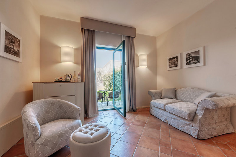 - 46-50 qm, Suite, Gartenblick, optisch getrennter Wohn-/Schlafraum, Dusche oder Badewanne, WC, Klimaanlage, Minibar kostenpflichtig, Safe (kostenpflichtig), TV, WLAN, kostenpflichtig, Wasserkocher, Terrasse (möbliert)