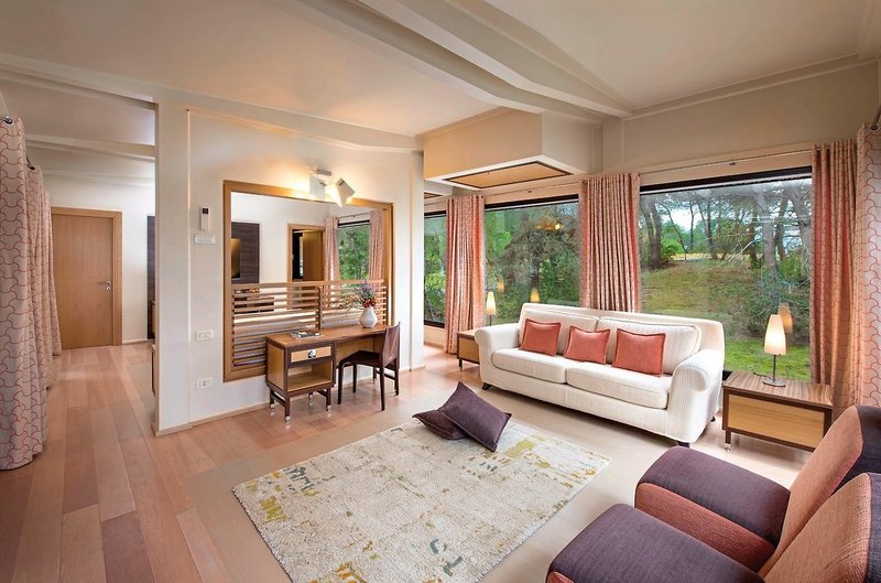 - 46-50 qm, optisch getrennter Wohn-/Schlafraum, kombinierter Wohn-/Schlafraum, Doppelbett, Doppelbettcouch, 2 Bäder, Dusche, Klimaanlage, Mini-Kühlschrank, Safe, TV, WLAN, Kaffeemaschine, Terrasse (möbliert, teilweise überdacht)