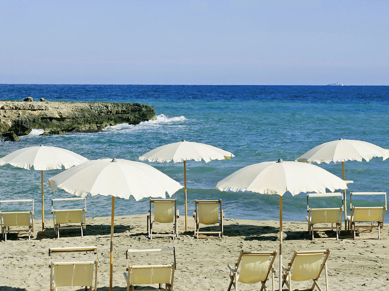 Lage & Umgebung Die ruhig gelegene Hotelanlage mit einem schönen Garten befindet sich nahe des Meeres. Ein Mietwagen ist empfehlenswert. Zum Zentrum von Ostuni sind es ca. 10 km. Der feinsandige, von Felsen unterbrochene Strand ist ca. 500 m entfernt. Hier bietet das Hotel einen kostenlosen Shuttlebusservice an.