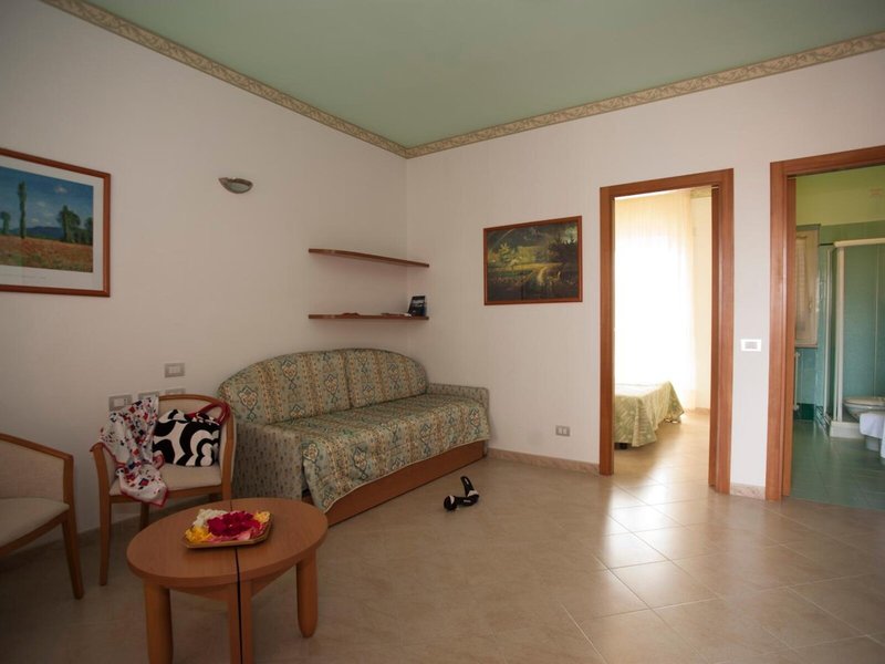 So wohnen Sie: Für angenehmes Raumklima in den Zimmern sorgen eine Klimaanlage und eine Heizung. Die Gäste können den Gartenblick von Balkon oder Terrasse genießen. Die Zimmer verfügen über ein Doppelbett und ein Sofabett. Zustellbetten können angefordert werden. Außerdem sind ein Safe und eine Minibar verfügbar. Die Kochnische ist mit einem Kühlschrank ausgestattet. Besten Urlaubskomfort bieten ein Telefon, Sat-TV und WiFi (ohne Gebühr). Im Badezimmer, ausgestattet mit einer Dusche und einer Badewanne, gibt es einen Haartrockner. Für besonderen Komfort in den Badezimmern sorgen Kosmetikartikel. Es sind auch rollstuhlgerechte Zimmer mit barrierefreiem Bad verfügbar. Das Hotel bietet Familien- und Nichtraucherzimmer.
