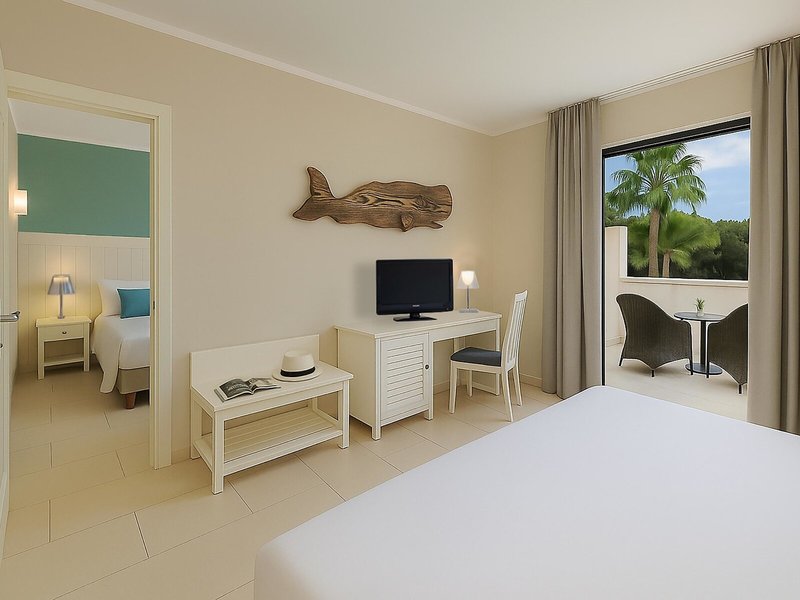 - Family Room Classic garden side (DZG1), Familienzimmer, Nichtraucherzimmer, Mindestalter im Zimmer: 12 Jahre, Gartenseite, Gartenblick, ca. 44 - 50 m², letzte Teilrenovierung 2026, Gesamtanzahl der Räume in diesem Zimmertyp: 2, Aufteilung wie folgt: bestehend aus 2 Doppelzimmern mit Verbindungstür, 2 Schlafzimmer, 2 Doppelbetten, Klimaanlage: ohne Gebühr, saisonabhängig, individuell regelbar, Fußboden: Fliesenboden, Safe: ohne Gebühr, Schreibtisch, Minibar: gegen Gebühr, Wasser: ohne Gebühr, Telefon, Internet: WLAN/WiFi: ohne Gebühr, Fernseher: im Schlafzimmer, Sat-TV, Reinigungsservice: täglich, ohne Gebühr, Dusche, WC, Föhn, Balkon oder Terrasse: mit Sitzgelegenheit