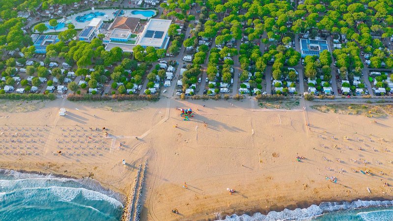 Vybavenie: Camping Village ponúka priestranné miesta pre karavany, kempingy alebo stany. Zariadenie je rozdelené na pomerne tienistú oblasť so stromami vo vnútri Camping Village a ihriskami priamo pri pláži. V obklopení zelene a len pár krokov od pláže na vás čakajú mobilné domy pre rodiny od 2 do 6 osôb. Apartmány sa nachádzajú asi 3 km od komplexu "Cavallino" a pláže (rezervácia na vyžiadanie). Wi-Fi pripojenie na internet je k dispozícii za poplatok.