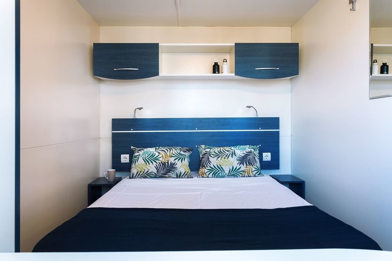 Mobile Home Lux [WML]: Die Mobile Homes Lux (WML) sind ca. 31 m² groß und ausgestattet mit einem Zimmer mit Doppelbett, einem Zimmer mit zwei Einzelbetten, Wohnbereich mit Schlafmöglichkeit, Bad mit WC, Dusche, Waschbecken und Bidet.