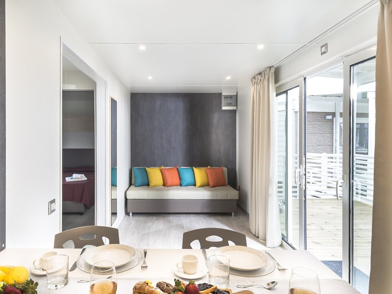 Vaše ubytovanie: Klimatizácia a kúrenie zabezpečujú príjemnú vnútornú klímu v izbách. Hostia si môžu vychutnať výhľad na more z balkóna alebo terasy. Izby majú manželskú posteľ a rozkladaciu pohovku. K dispozícii sú samostatné spálne. K dispozícii sú aj detské postieľky pre najmenších hostí. Cennosti je možné bezpečne uložiť do trezoru. Kuchynka je dobre vybavená na vlastné varenie a má chladničku, sporák, mikrovlnnú rúru, príslušenstvo na prípravu čaju/kávy a umývačku riadu. Telefón, satelitná televízia, rádio a WiFi (za poplatok) poskytujú maximálny komfort počas dovolenky. Služba zahŕňa aj záverečné upratovanie. Kúpeľne majú sprchovací kút, vaňu a bidet. Ako ďalšie pohodlie je k dispozícii sušič vlasov. K dispozícii sú aj bezbariérové izby s bezbariérovými kúpeľňami. Komplex ponúka rodinné a nefajčiarske izby.